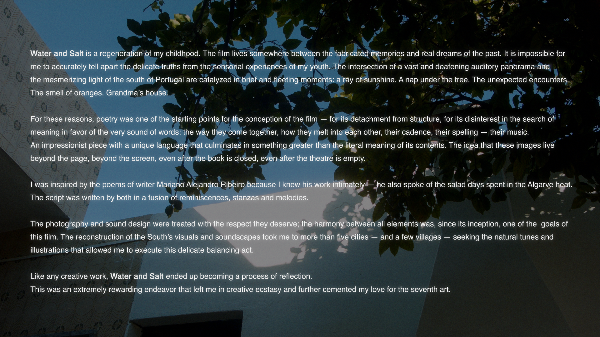 Based on the poetry of Portuguese-Argentine writer Mariano Alejandro Ribeiro.